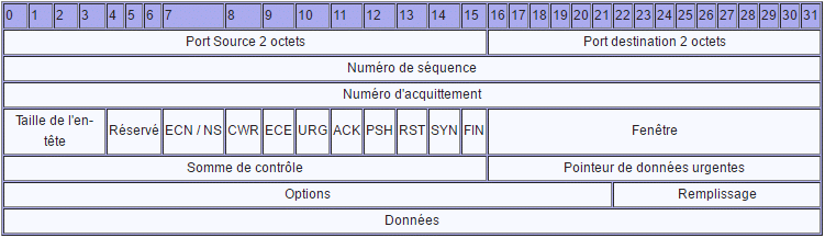 Les trames TCP et UDP sont encapsulées dans un paquet IP :